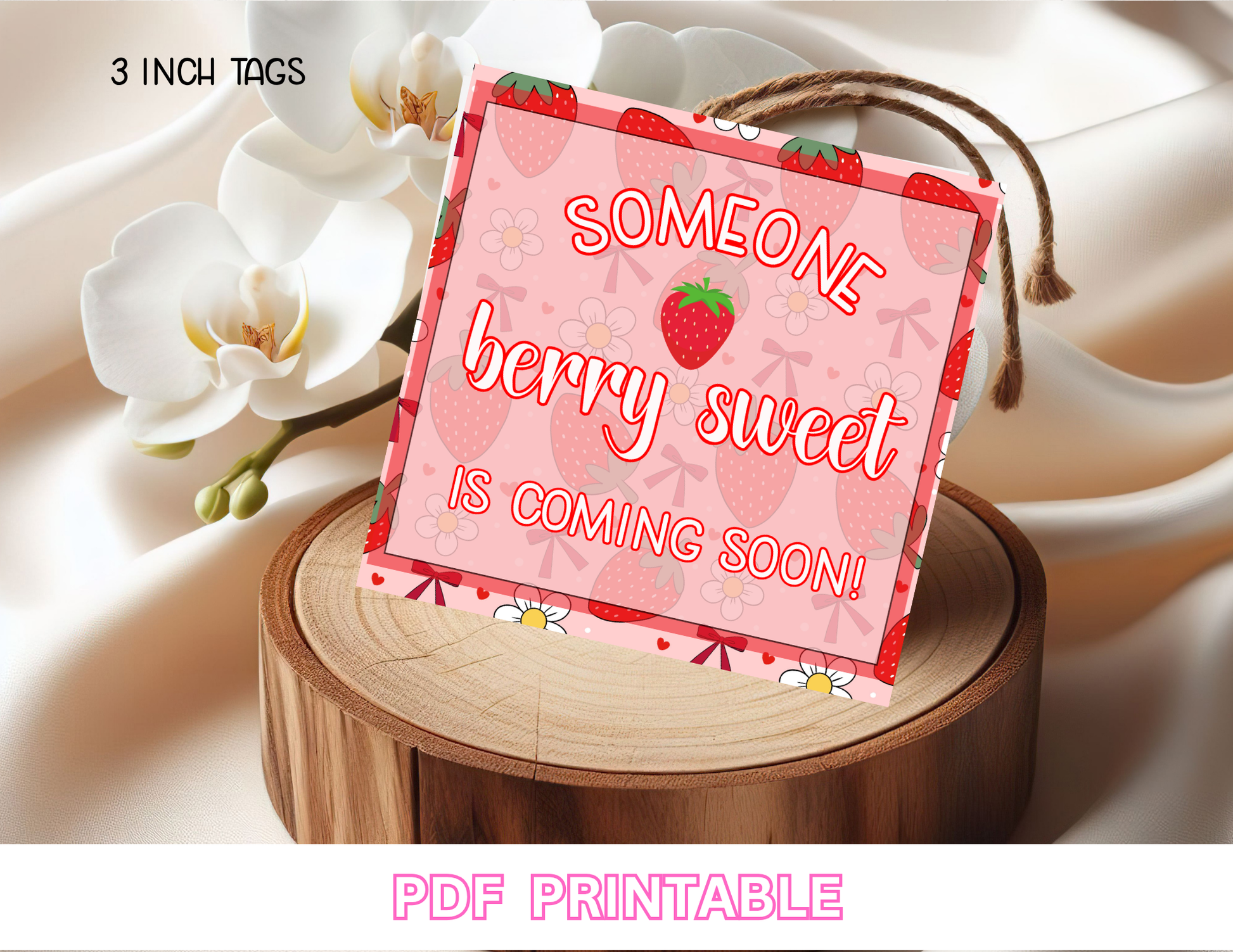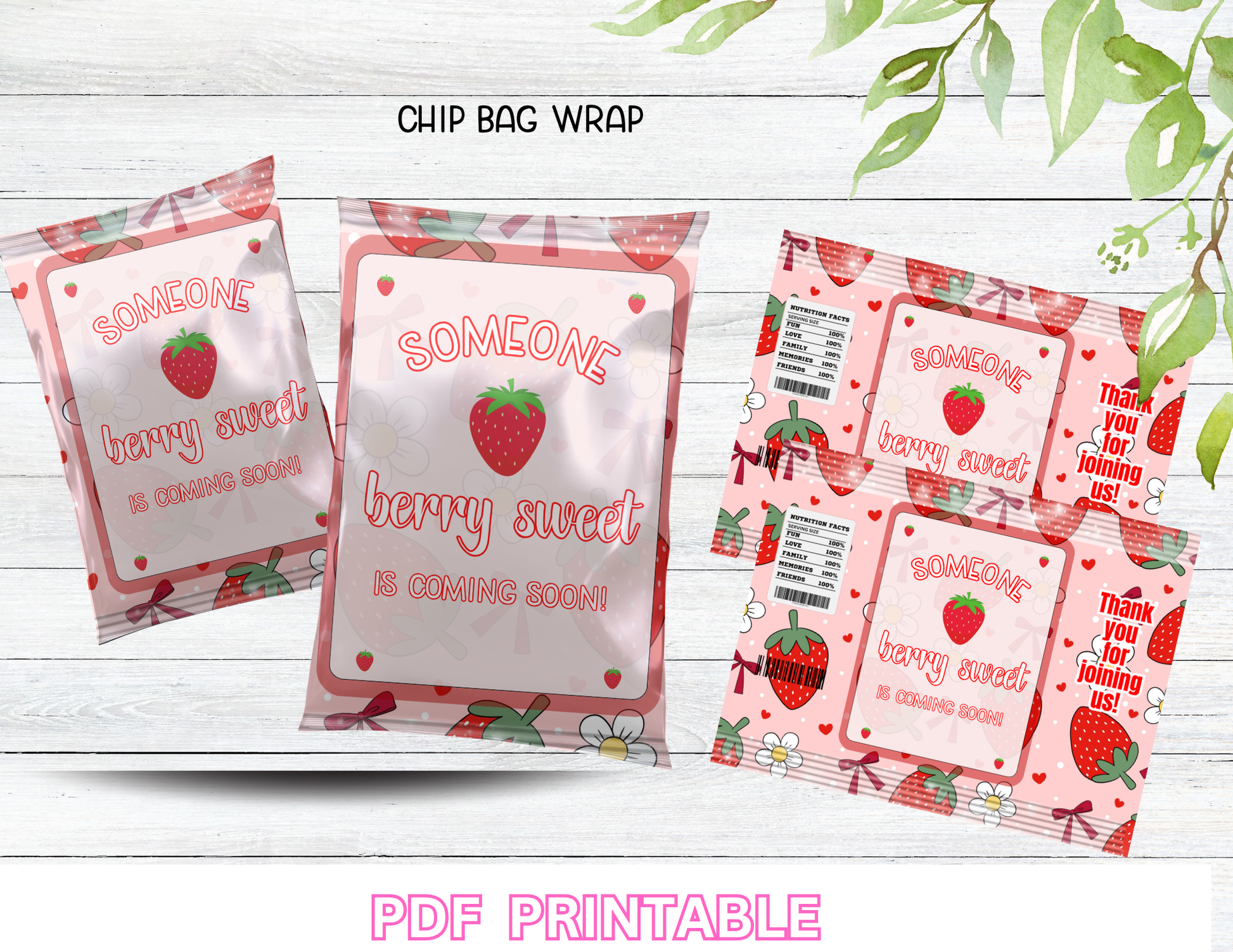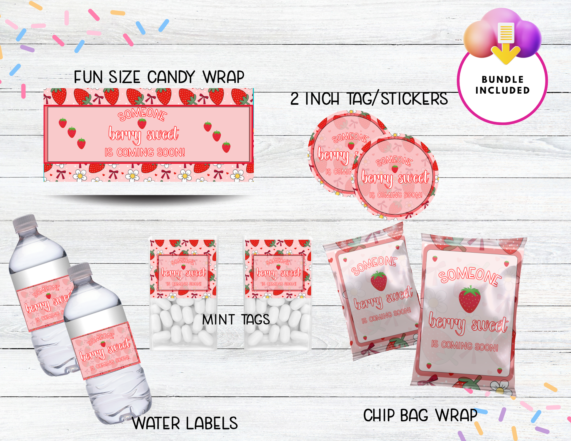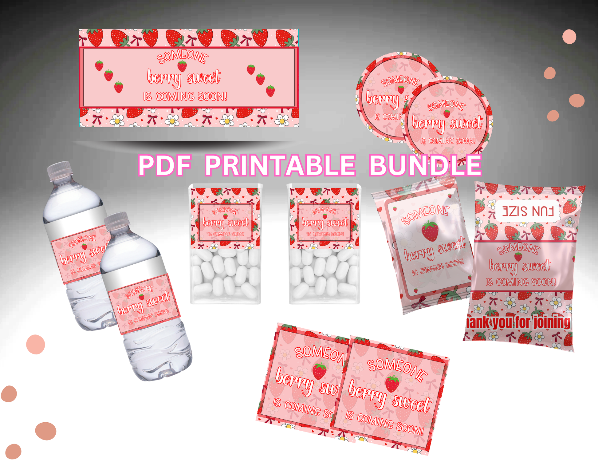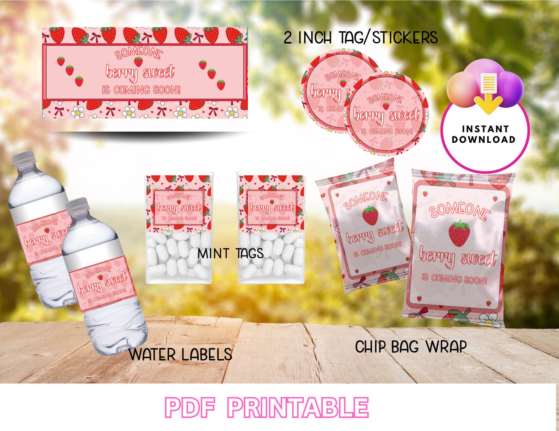 🍓 Berry Sweet Baby Shower Printable Party Decor | Strawberry Baby Shower Theme | Girl Baby Shower Decorations | NON Editable-PDF FILE-Instant Download