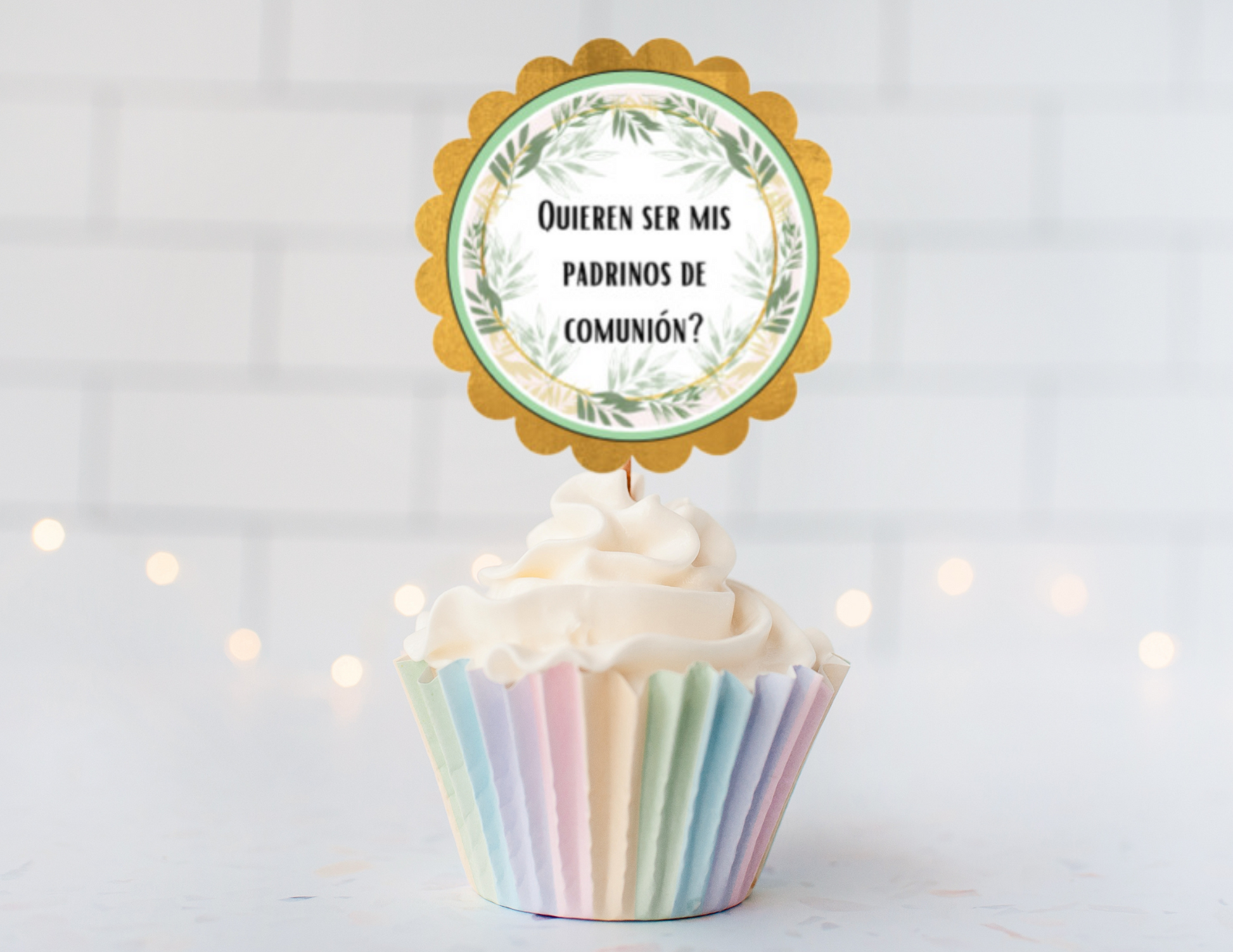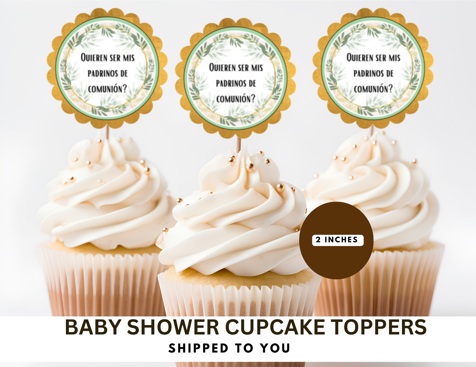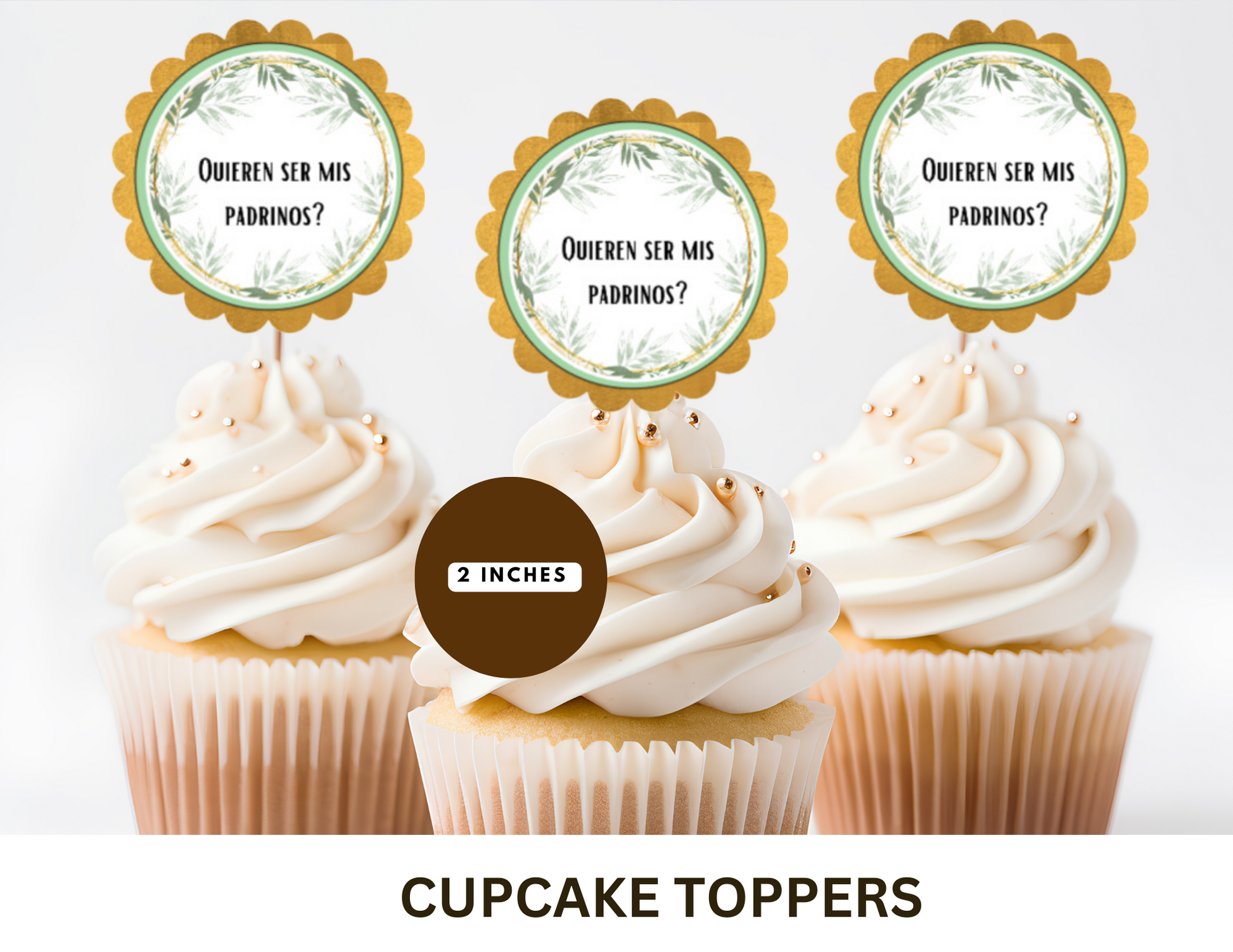 Quieren Ser Mis Padrinos Topper - GodParents Cup Cake Topper - 12 Cake Topper