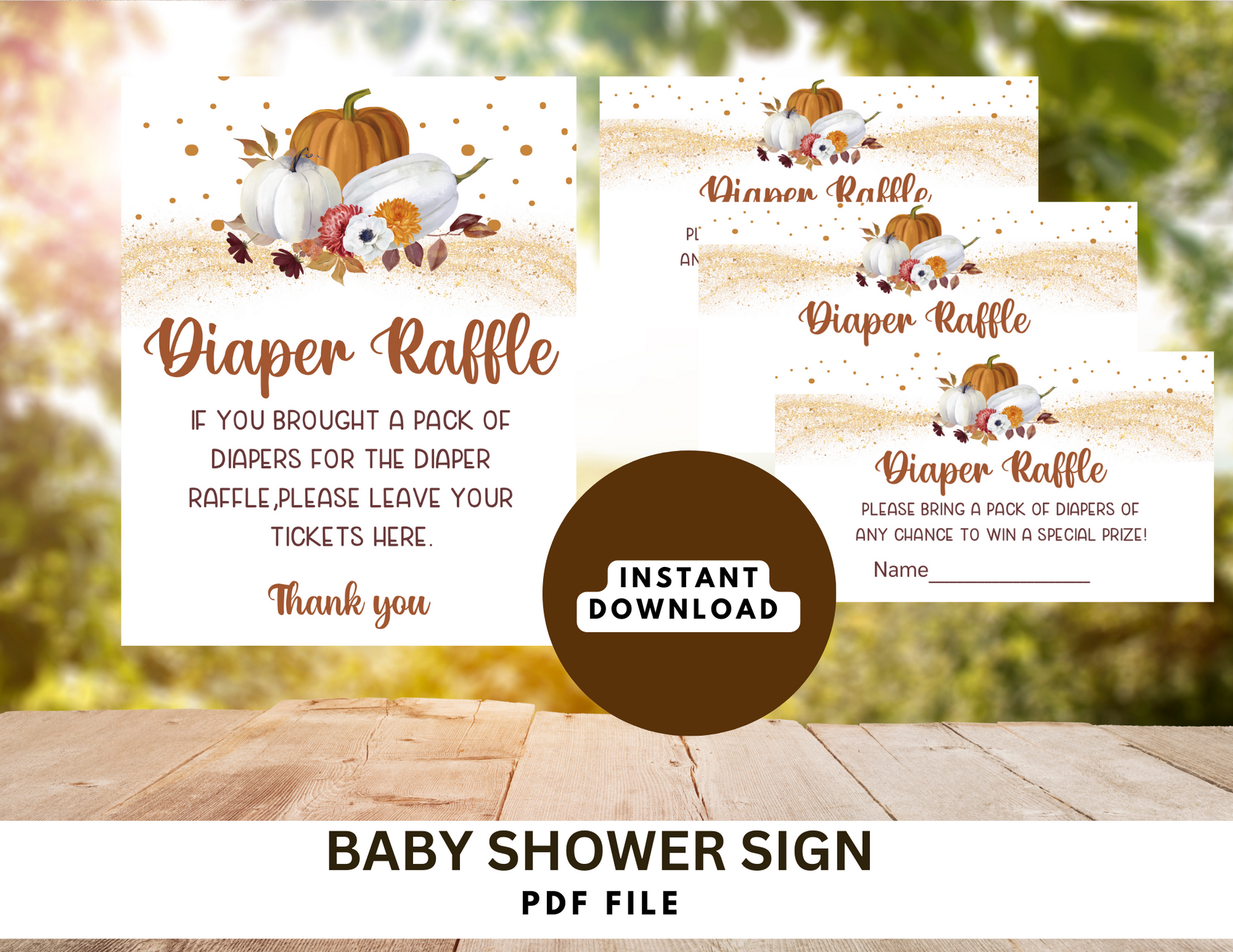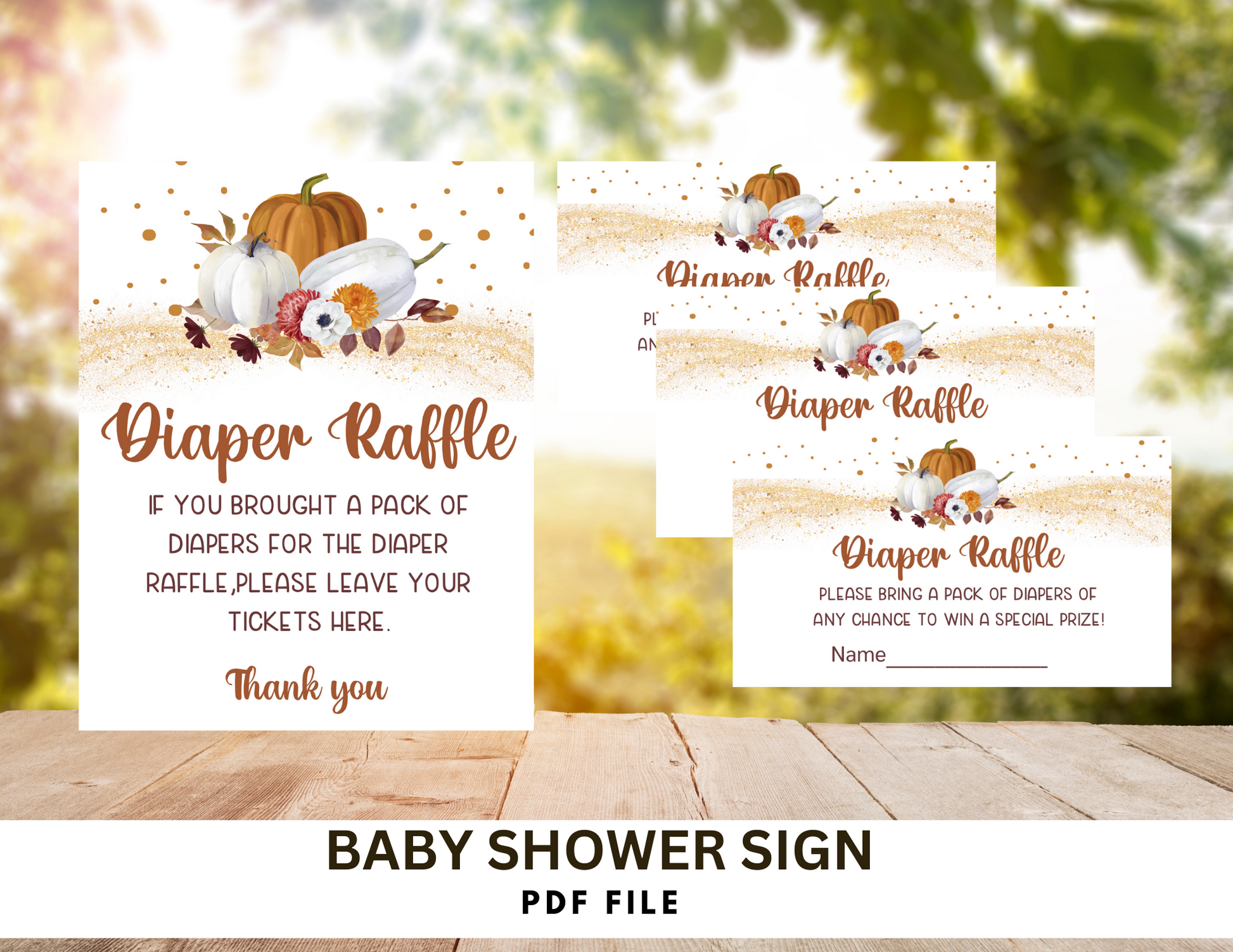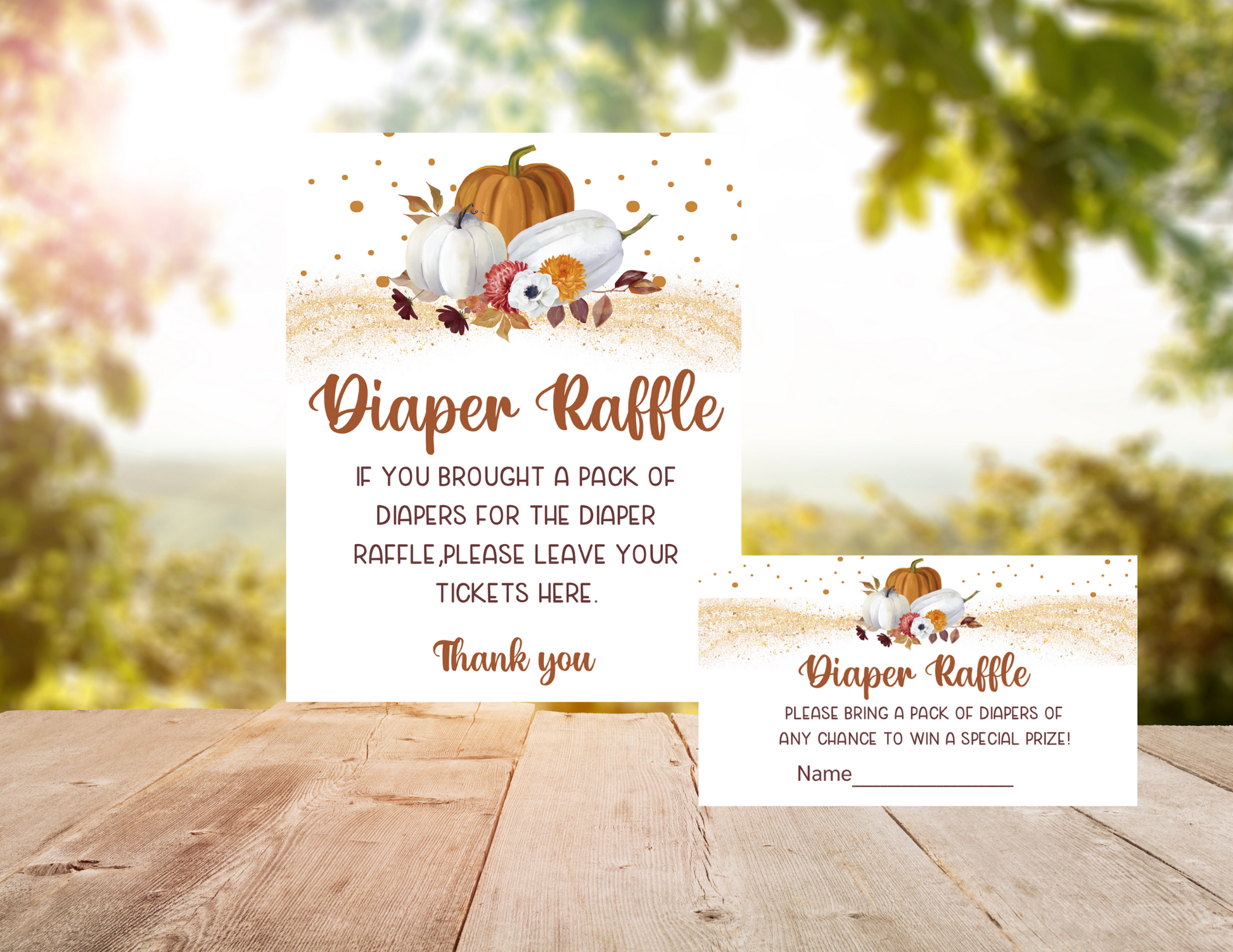 Printable Diaper Raffle Sign & Tickets, Fall Diaper Raffle Sign and Raffle Cards Set, Baby Shower, Autumn, Pumpkin,