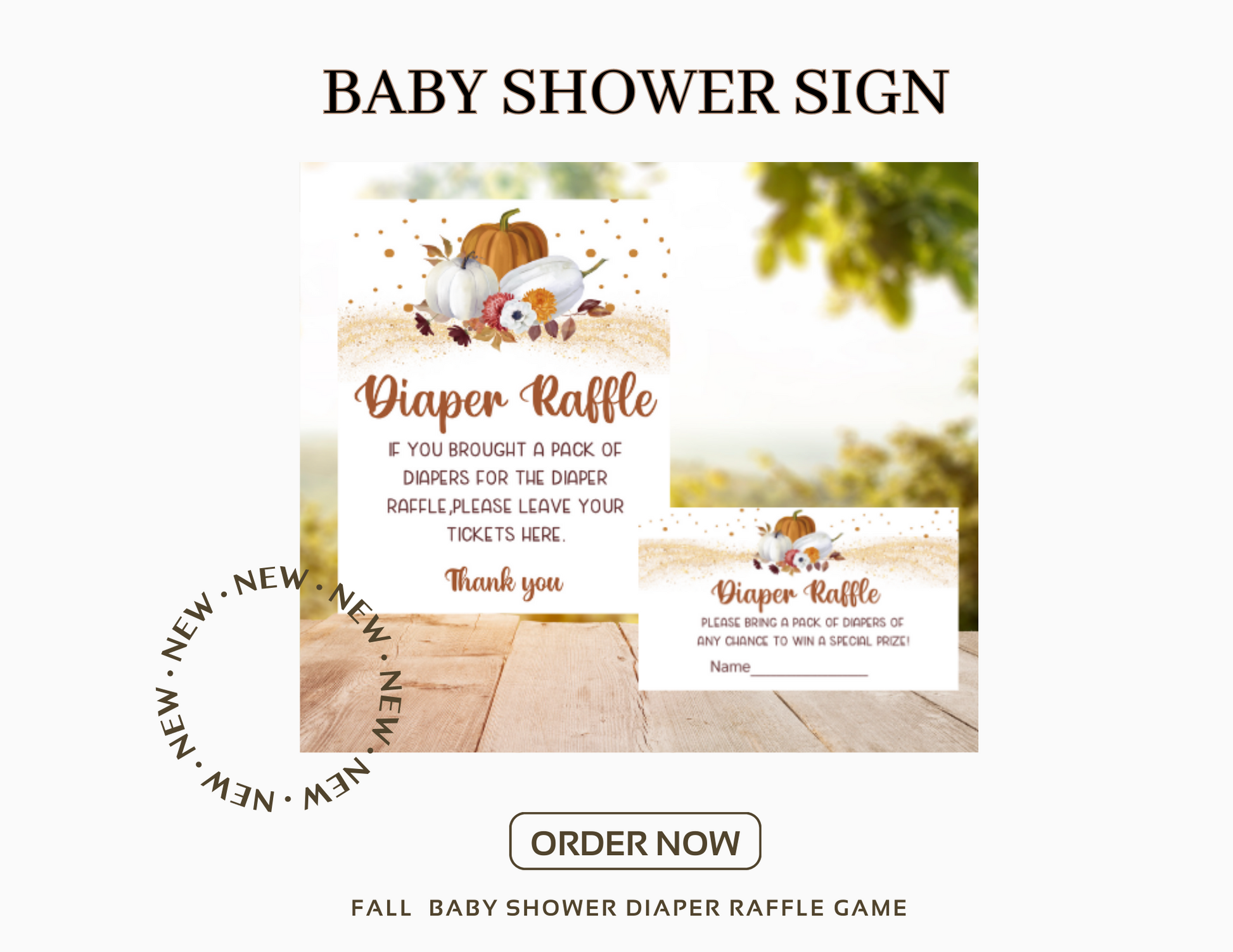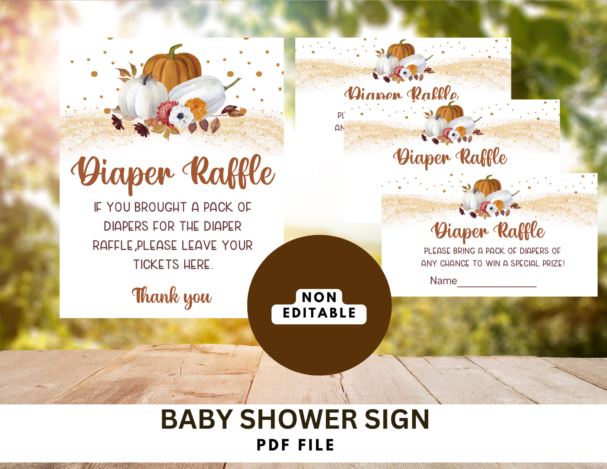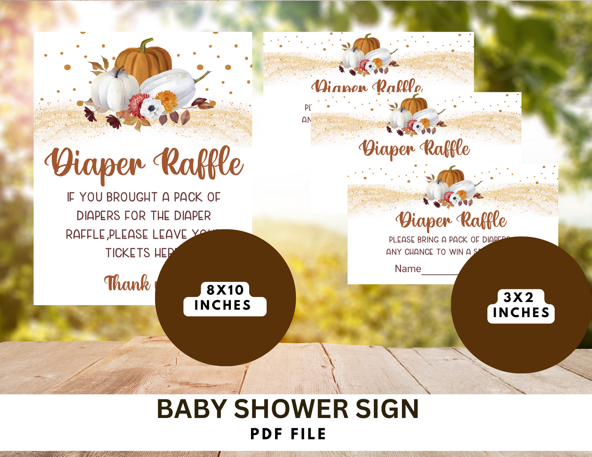 Printable Diaper Raffle Sign & Tickets, Fall Diaper Raffle Sign and Raffle Cards Set, Baby Shower, Autumn, Pumpkin,