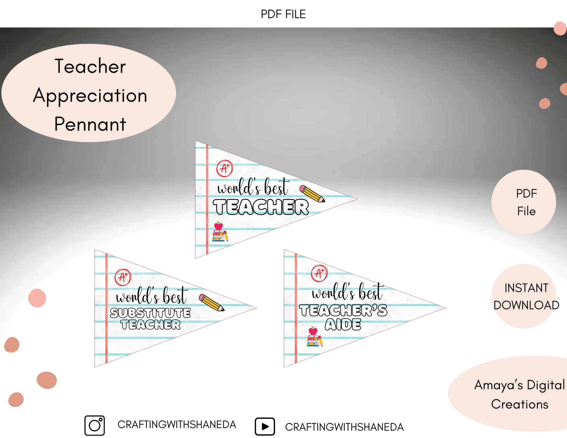 Celebrate Teacher Appreciation Week with these fun and festive printable pennant flags! Includes designs for teachers, assistants, and paraprofessionals—just print, cut, and display. Perfect for classroom décor, teacher gifts, or appreciation events. Instant digital download means you can start crafting right away!