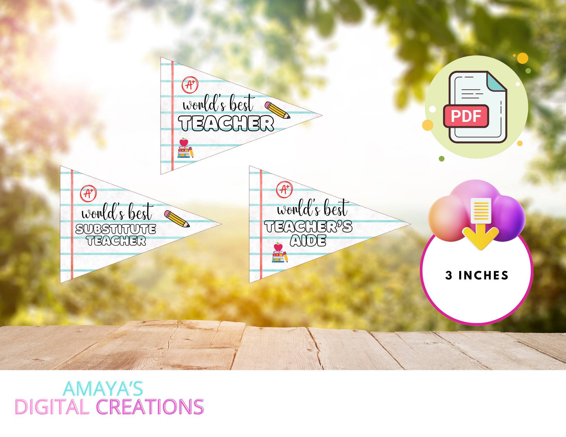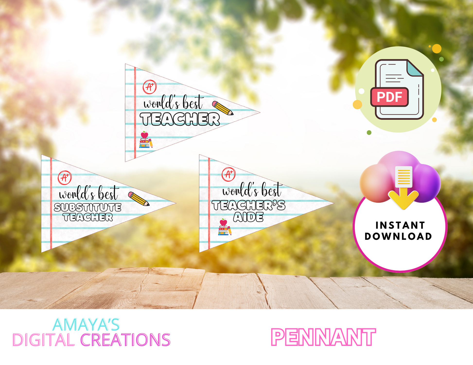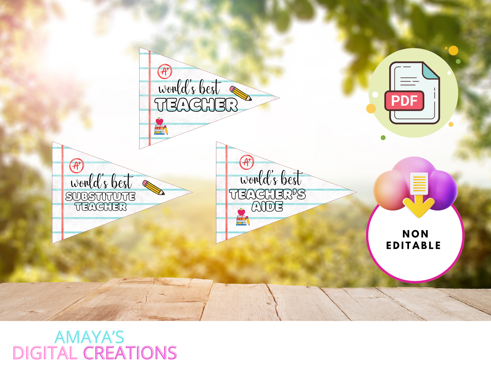 Printable Teacher Appreciation Pennant Flags – World's Best Teacher, Assistant, Paraprofessional, Instant Download, DIY Classroom Decor