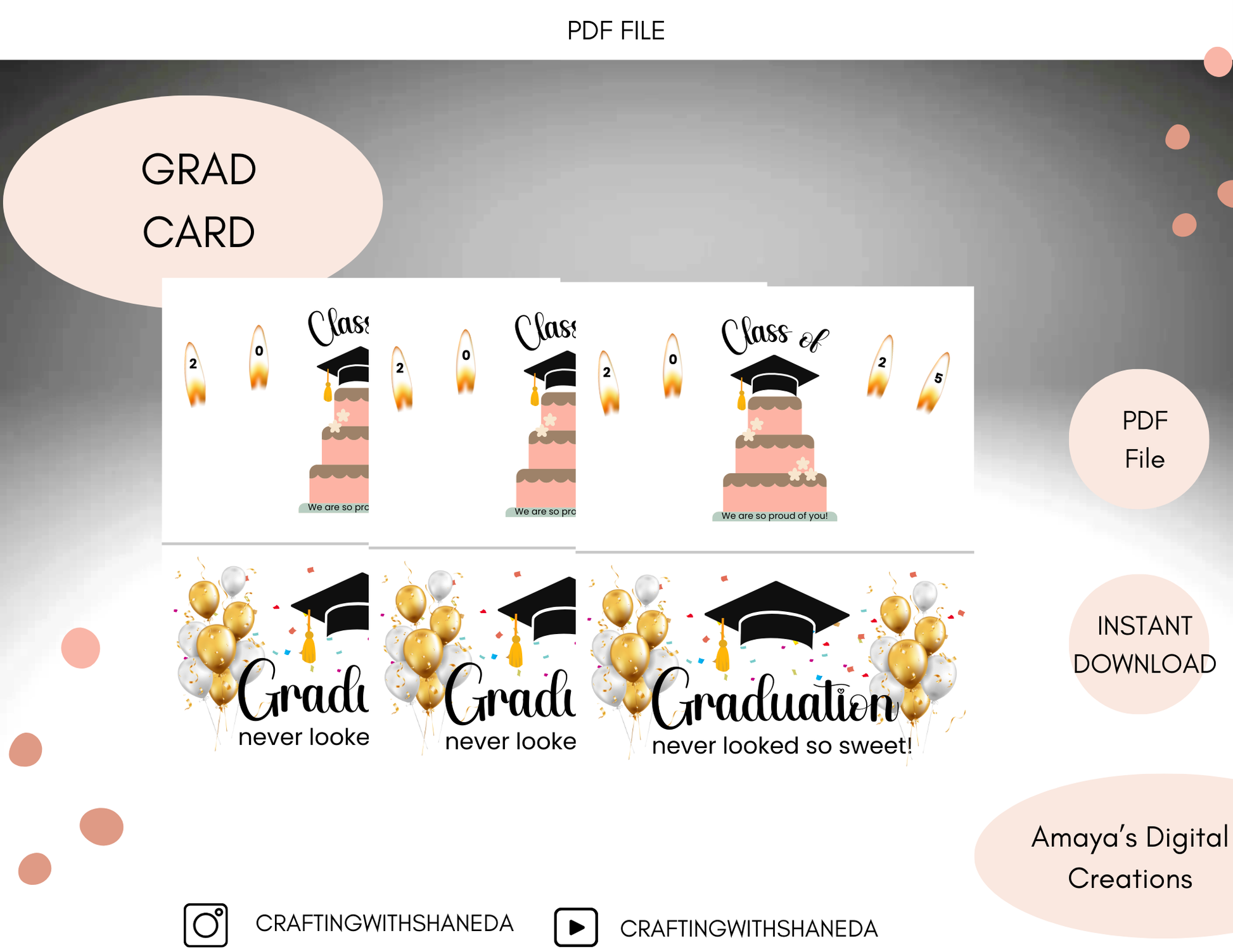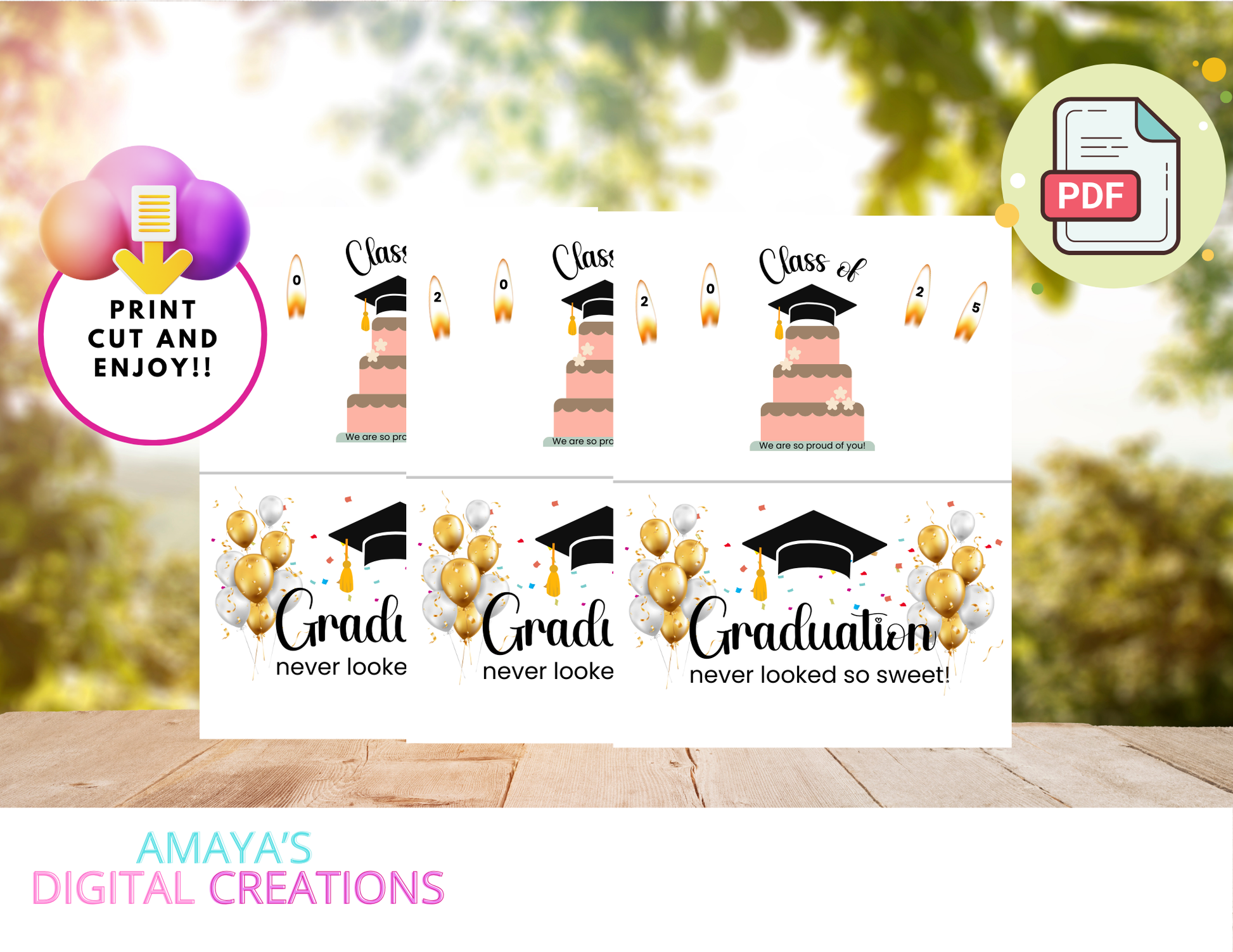 Celebrate your graduateās big moment with our beautifully designed Graduation Cards PDF bundle! Perfect for party planners, DIY crafters, Cricut designers, and small business owners, these instant downloads make heartfelt gifts and stunning decor. . Easy to download, easy to love ā elevate your graduation festivities today!