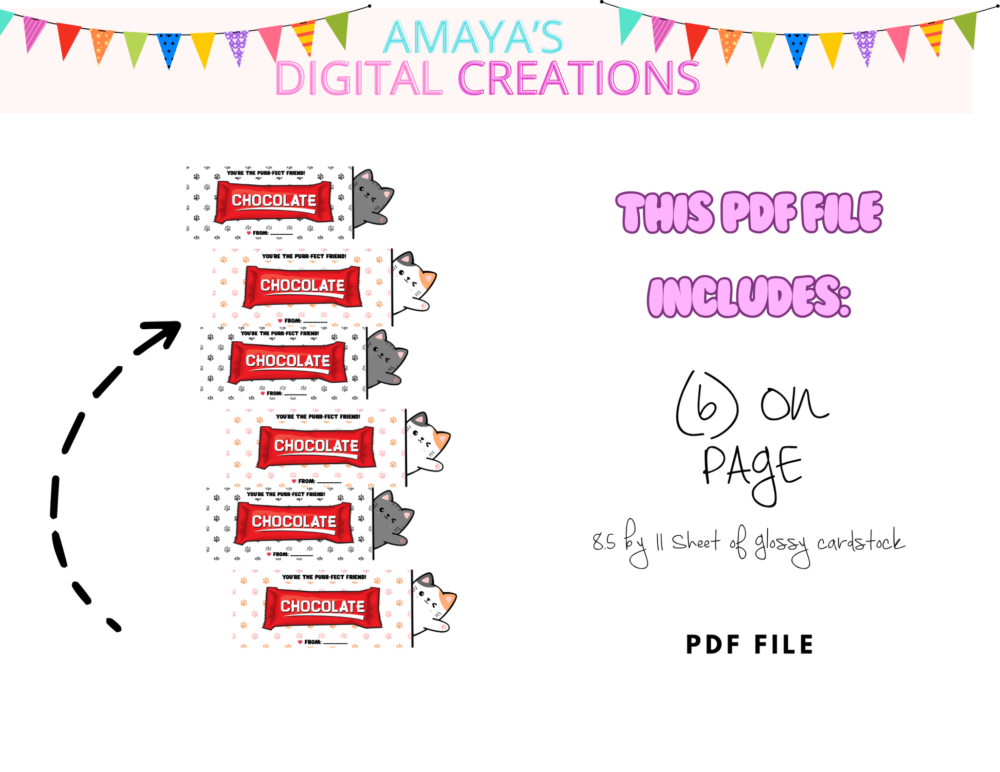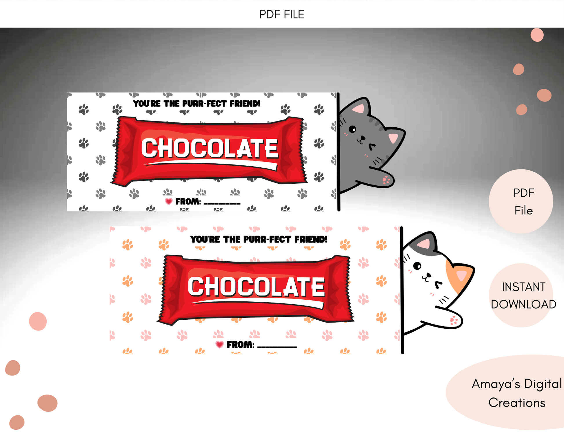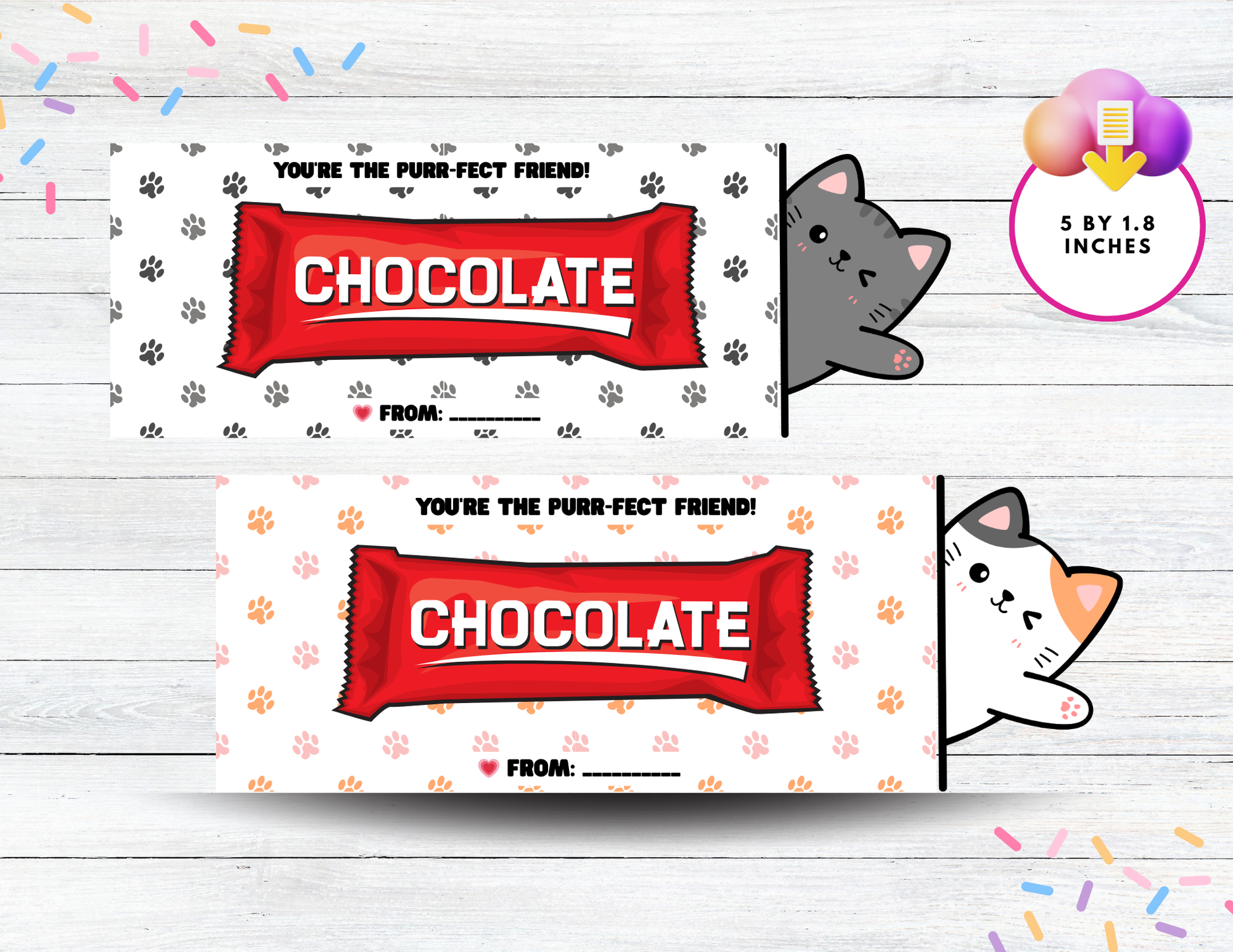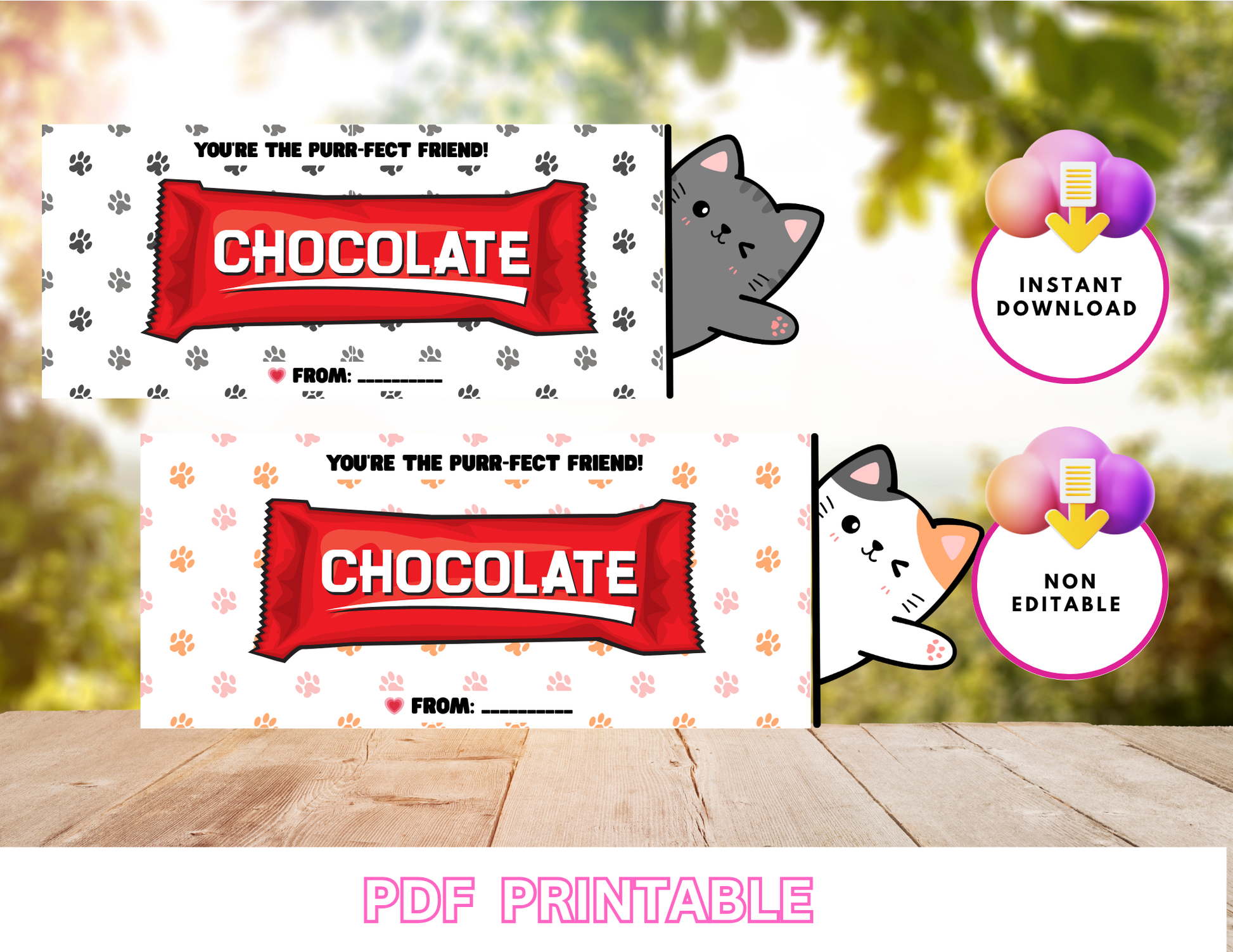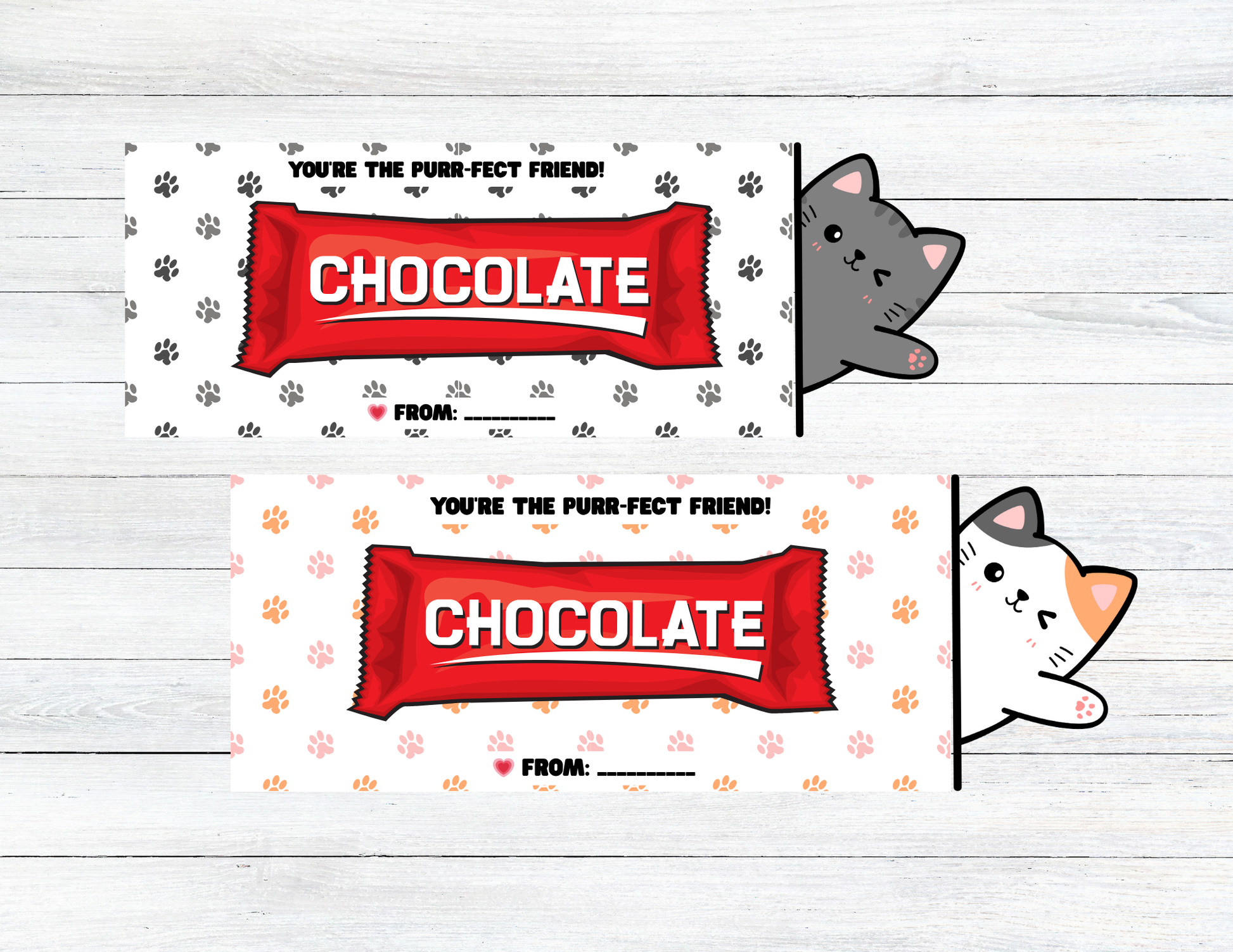 Surprise your favorite people with this adorable cat-themed candy bar wrapperāperfect for Valentine's Day, classroom treats, party favors, or just because!