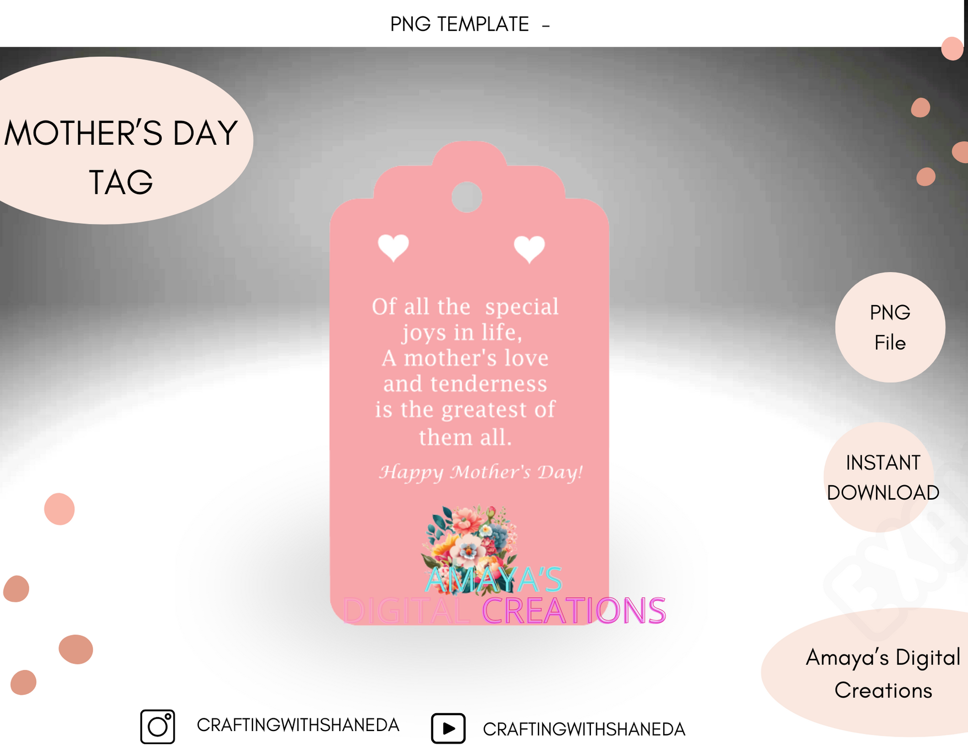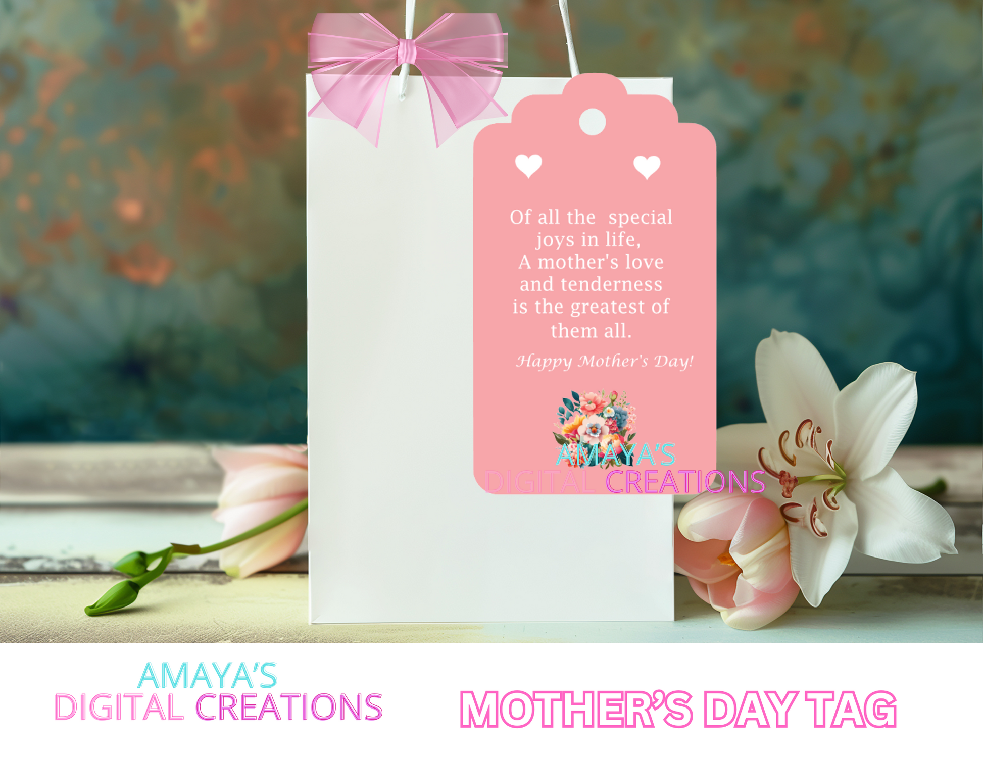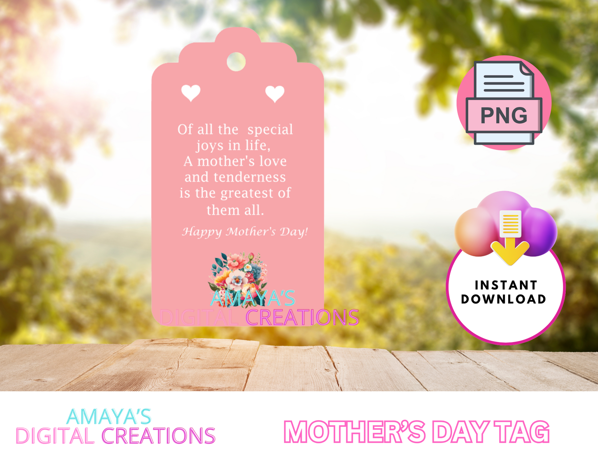 Mother’s Day Gift Tag | Printable PNG Tag | DIY Gift Tags | Instant Download | Gift Tag for Mother's Day | Heart Design | Customizable Gift Tag