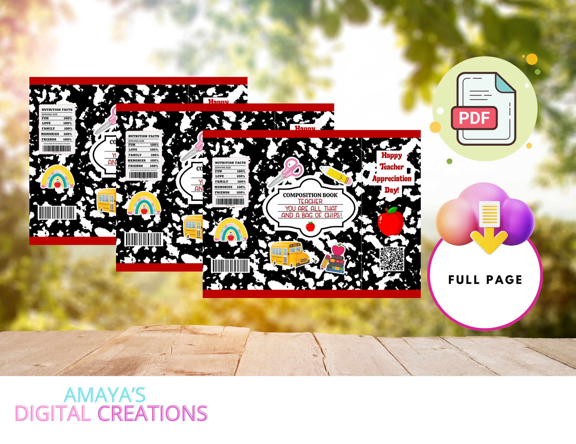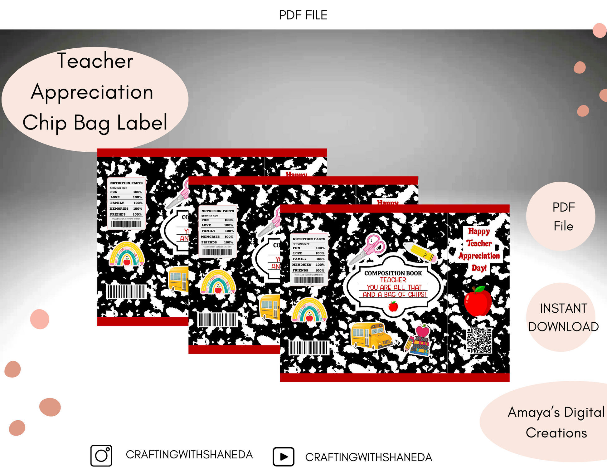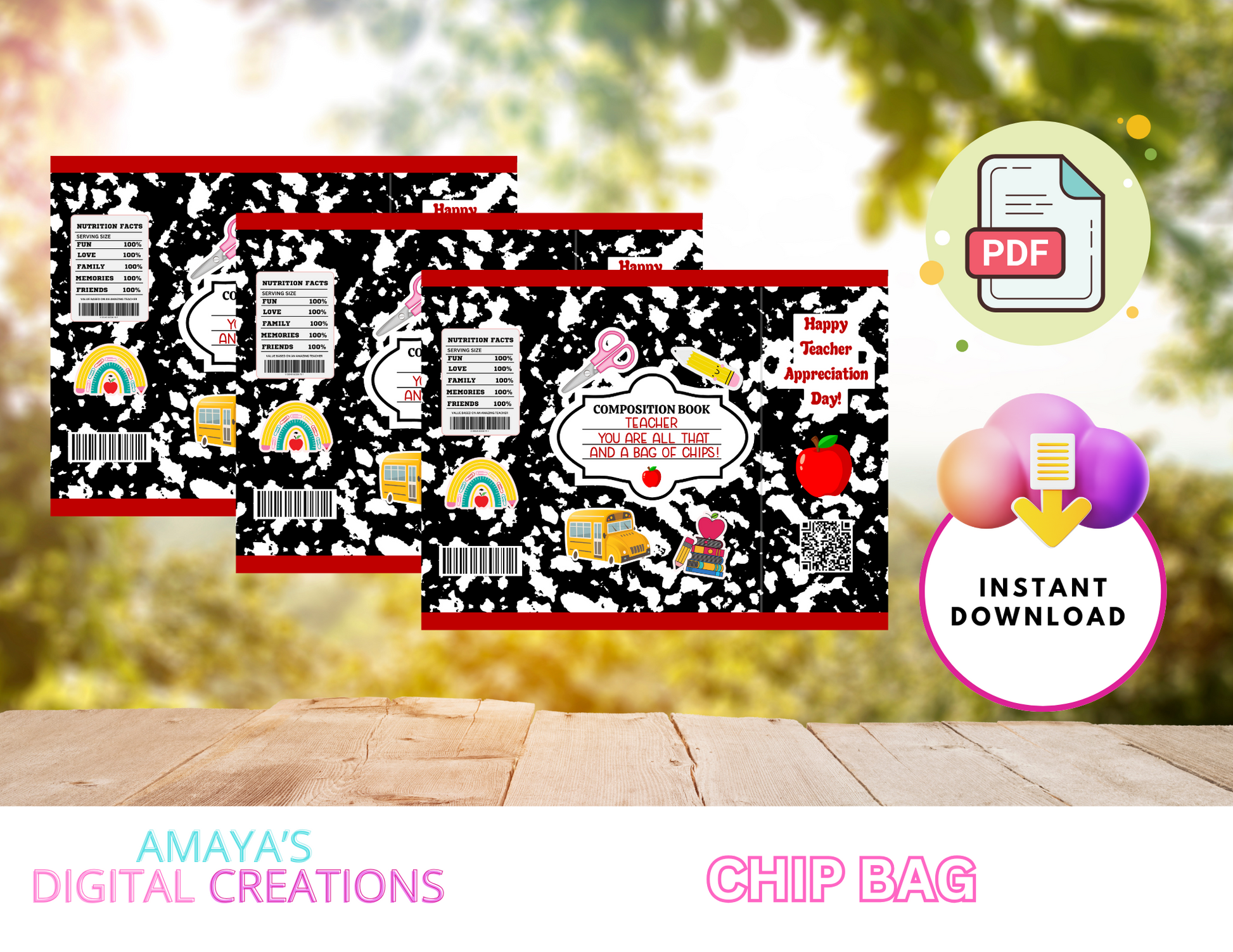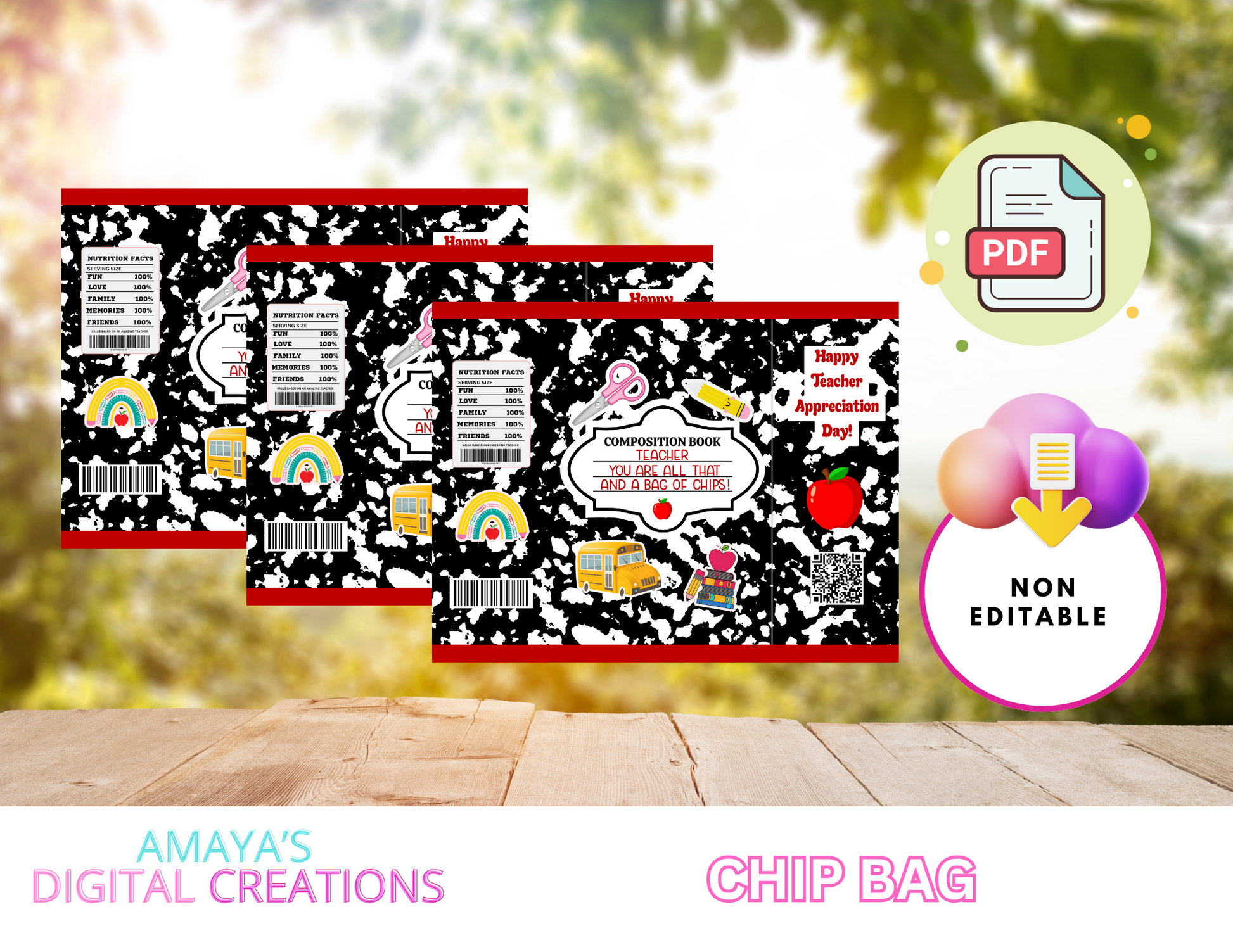 Teacher Appreciation Chip Bag Digital Instant Download ,No Physical Item, PDF