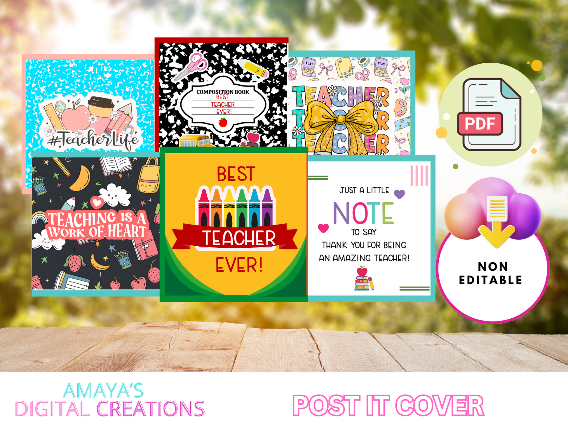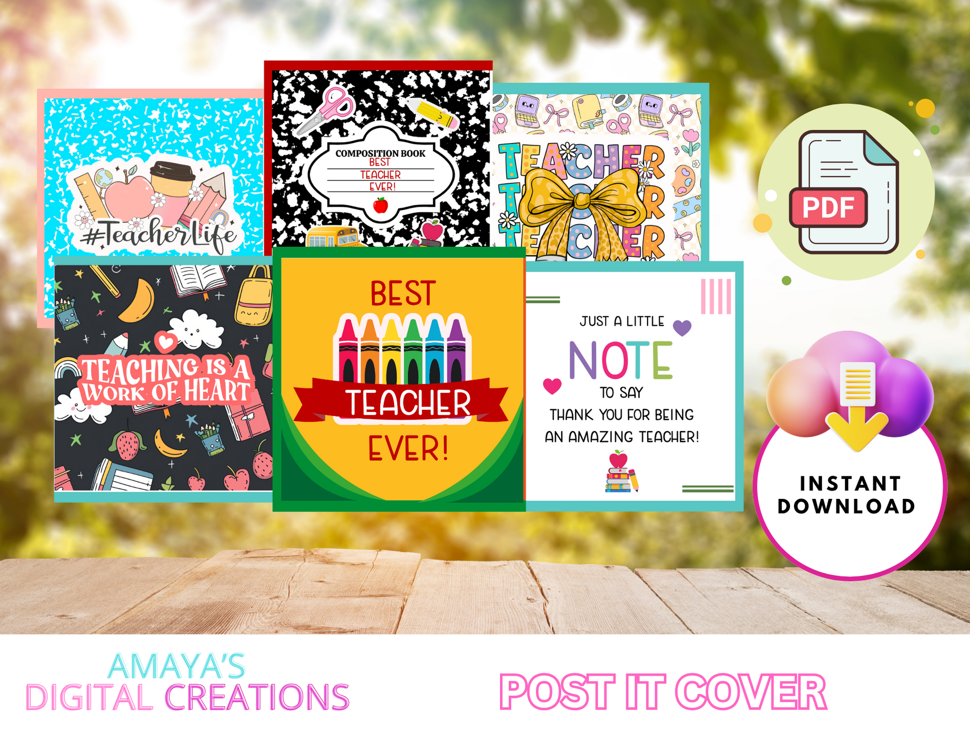 Teacher Appreciation Post It Note Covers | Printable Sticky Note Holder | DIY Teacher Gifts | Instant Download | Cricut Classroom Gift