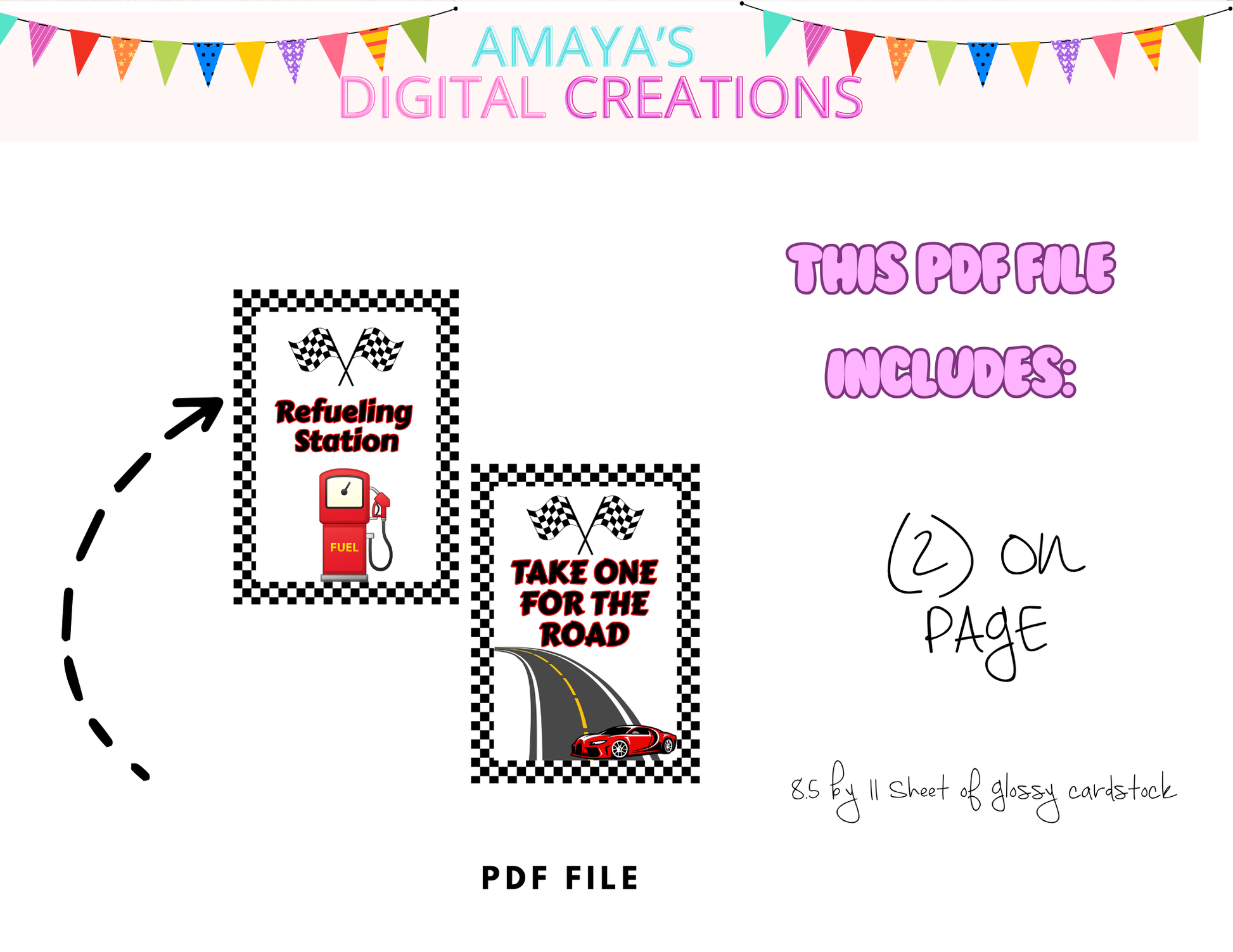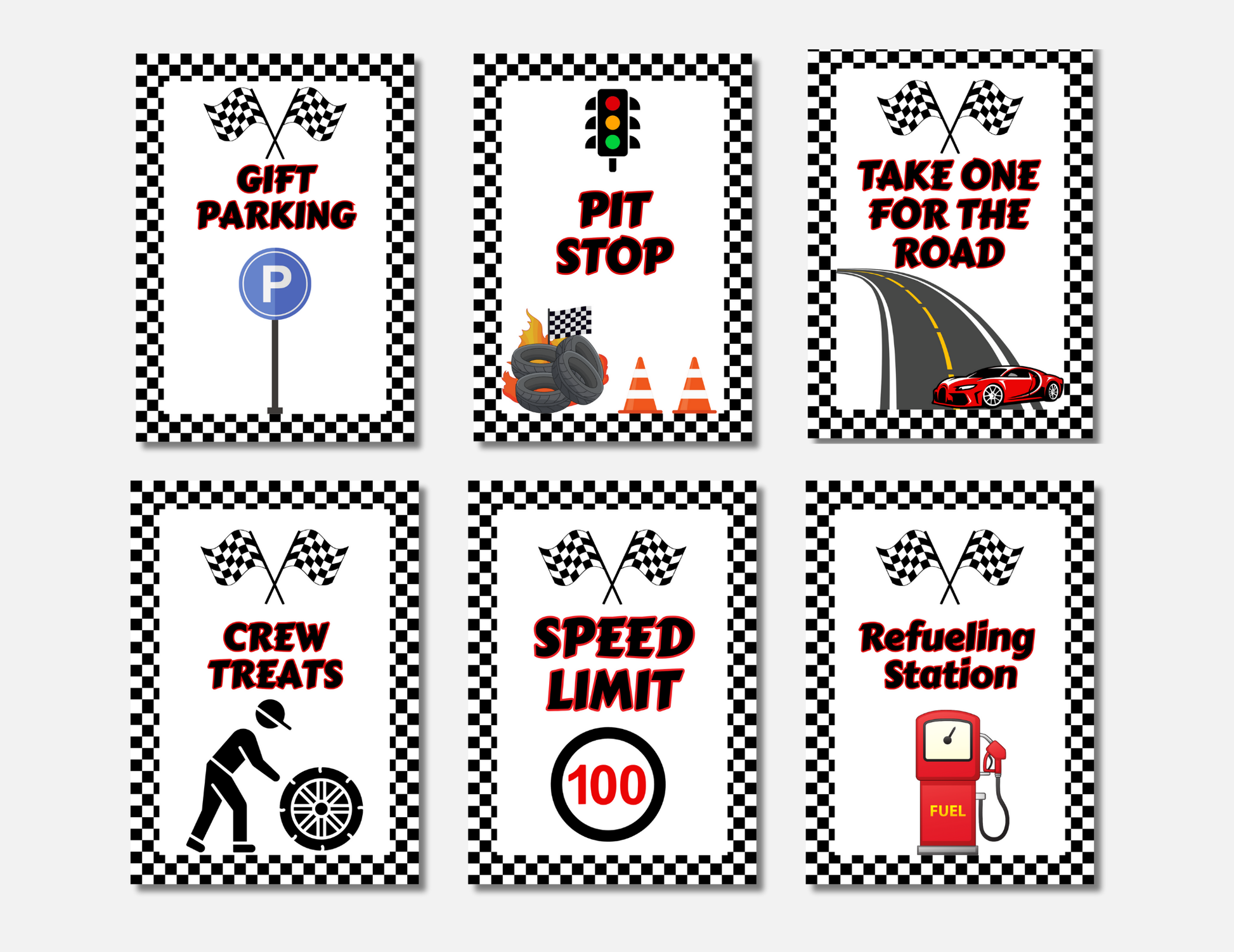✔ Designed with fun checkered flag borders and bold text